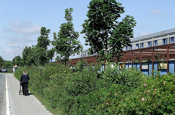 Lavhuse har inddækkede altaner, og have i stueetagen.